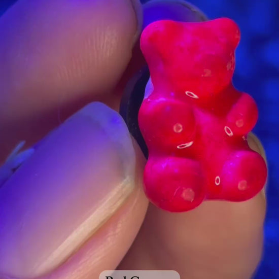 Hand sculpted out of polymer clay, painted with blacklight paints, and sealed with UV resin.