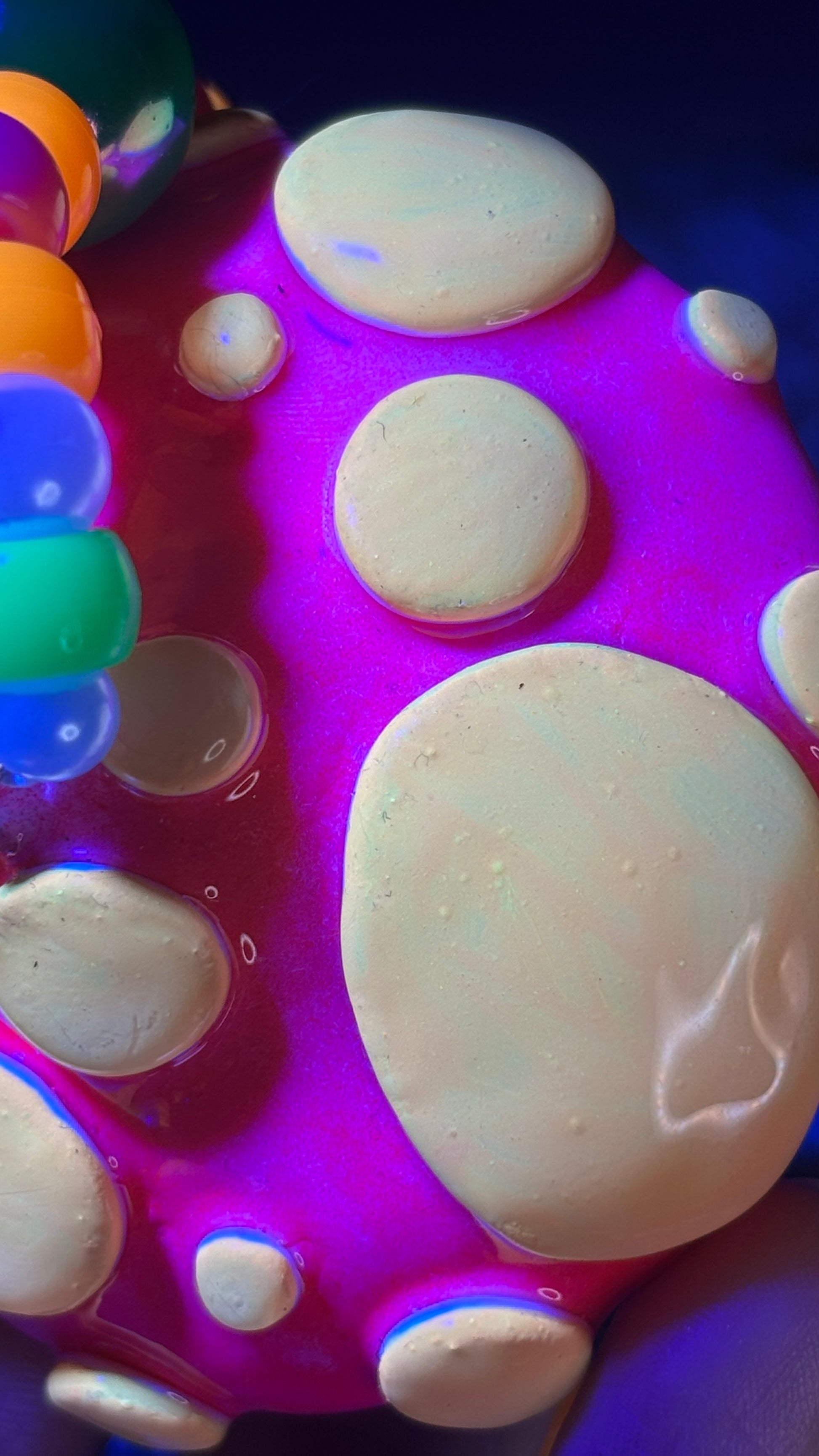 Hand sculpted out of polymer clay, painted with blacklight paints and sealed with UV Resin. This creation is a one of a kind creation of mine. π₯°π«Άπ»