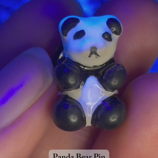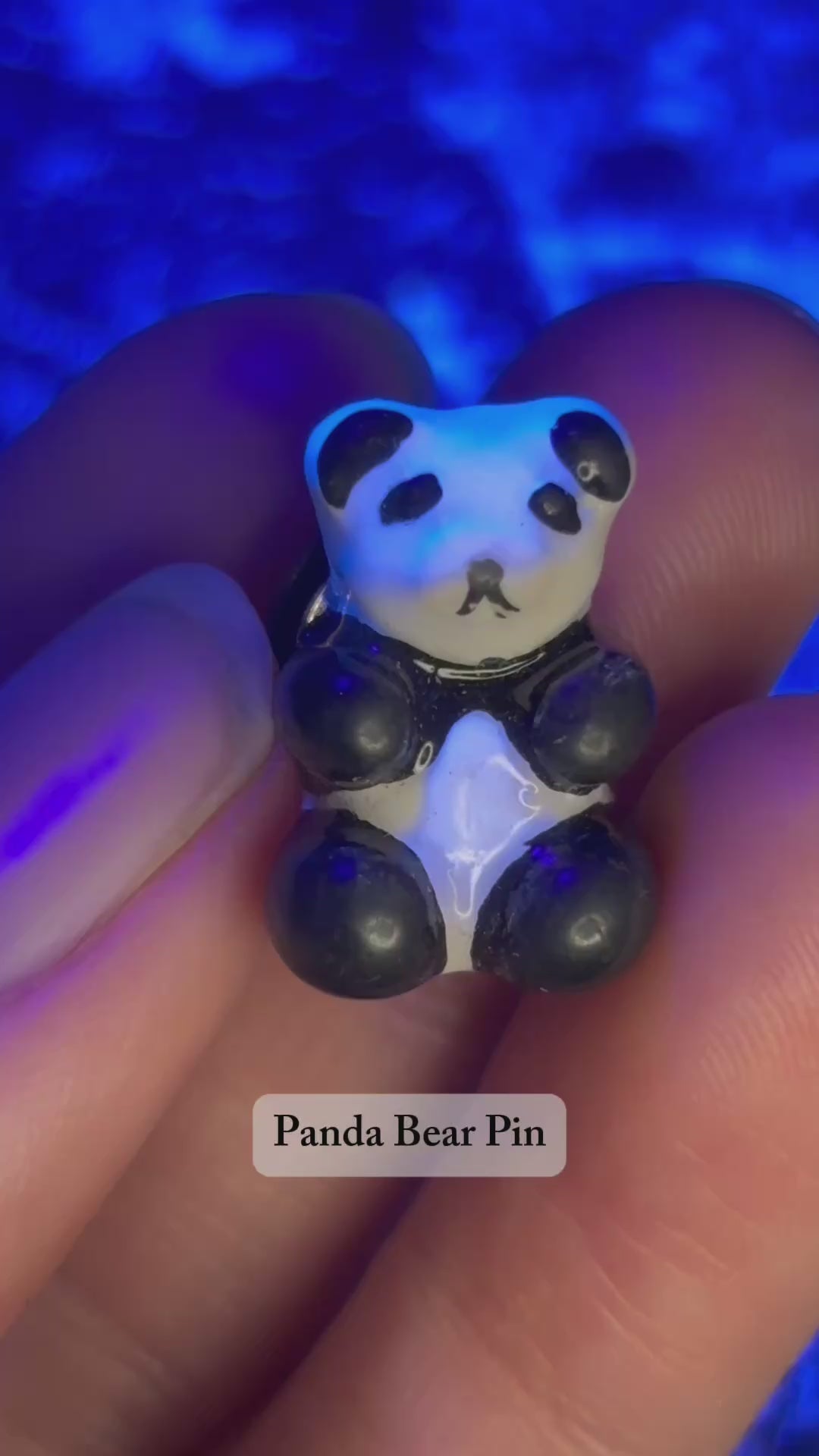 Hand sculpted out of polymer clay, painted with blacklight paints, and sealed with UV resin.